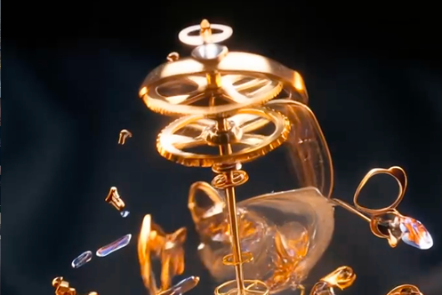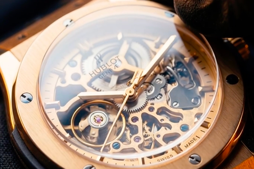 Создать видео, демонстрирующее не только дизайн часов, но и их внутренний механизм, подчеркивая сложность конструкции и качество деталей.