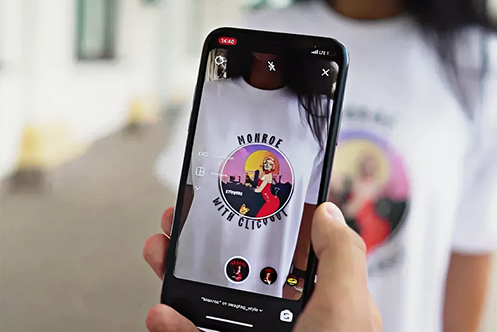 Разработаны AR-фильтры, реагирующие на изображения на принтах. Персонажи коллекции — Сальвадор Дали, Зигмунд Фрейд и Мэрилин Монро — анимированы и воспроизводят отдельные истории непосредственно с футболки. Пользователи получают готовый контент для Stories